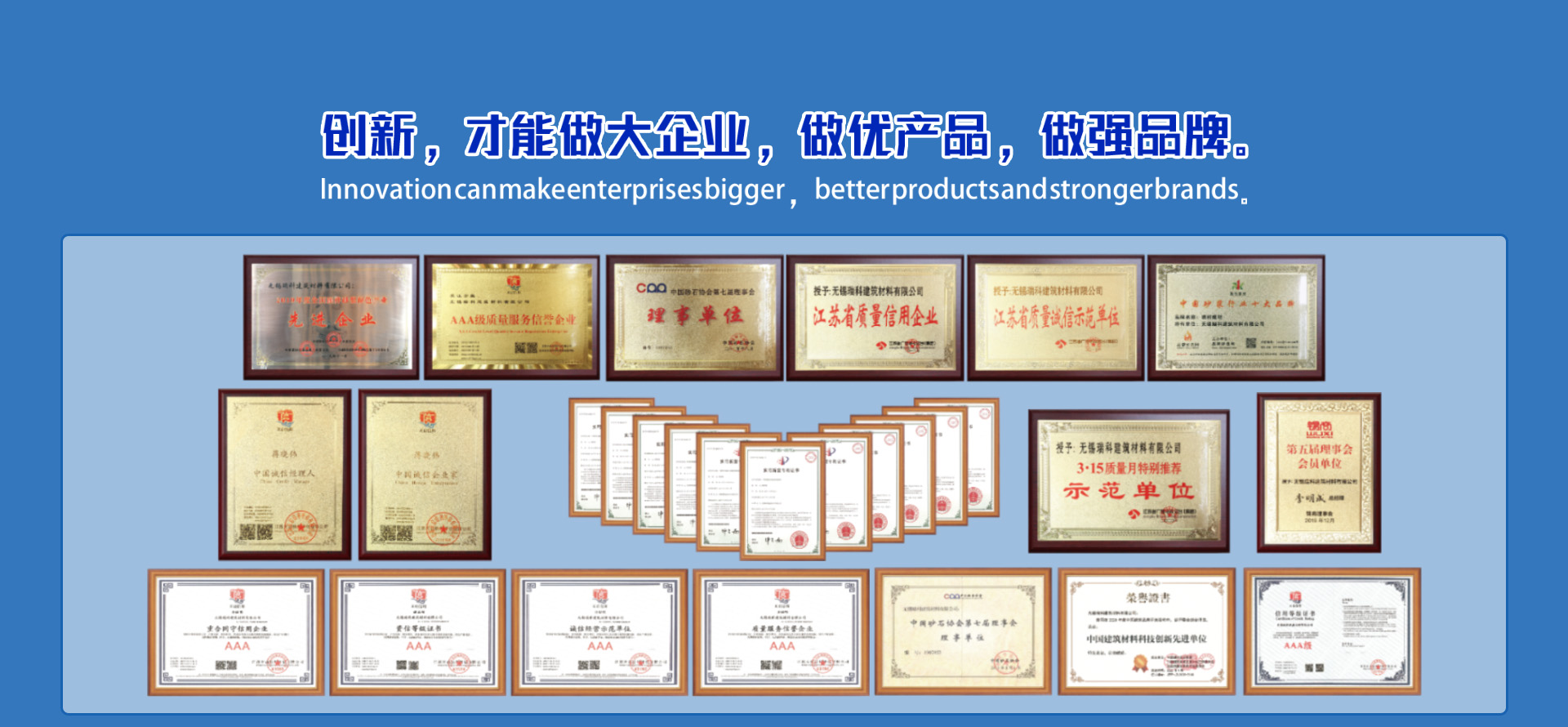 無論過去,現(xiàn)在和將來,公司將一如既往地堅持“瑞科高質(zhì)建材,開創(chuàng)綠色未來”的企業(yè)理念,以科學(xué)的管理,先進的技術(shù),合理的價格,優(yōu)質(zhì)的服務(wù)立足于市場,以誠信贏得客戶。
